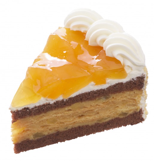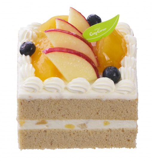 りんごダイス入りクリームを紅茶が香るふんわりスポンジでサンド。りんごやブルーベリーで飾った、フルーツの酸味と紅茶の香りが調和するフルーツケーキとなっている。