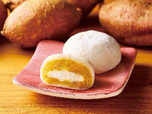 甘く濃厚な味わいが特長の鹿児島県産安納芋ペーストを使用したこしあんに、北海道生乳を使用したクリームをあわせ、もちもちとした食感のもち生地で包みこんだ一品。