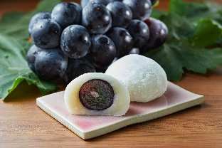 長野県産ナガノパープル(まるごと1粒)を白あんともち生地で包み込みこんだ一品。程よい酸味のナガノパープルが、白あんの甘味を引き立てる。