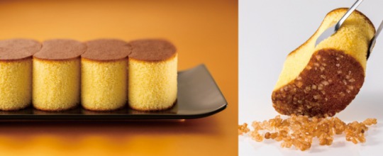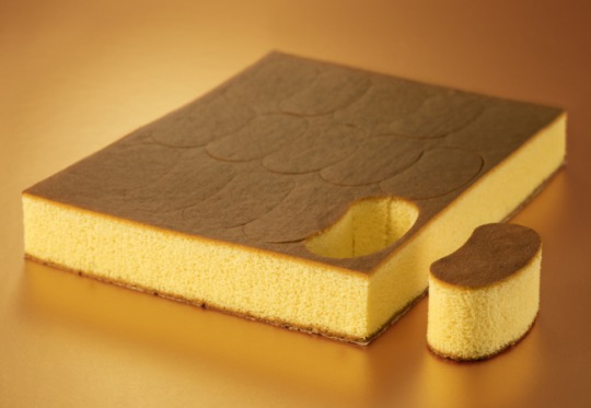 ほのかにバナナの風味が広がる本格カステラにメープルざらめを散りばめて、可愛いバナナの形にくり抜いた。この、きれいなバナナカーブの秘密は、音速よりも速い水の流れで自在にくり抜く“水流カッター”。伝統の菓子製法と現代のテクノロジーが出会ってうまれたお菓子。