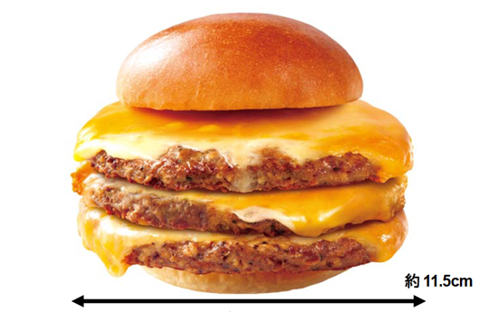 株式会社ロッテリアは、2017 年 8 月 27 日(日)~29 日(火)の期間限定で、『肉がっつりトリプル絶品チーズバーガー』を、全国のロッテリアにて販売する。