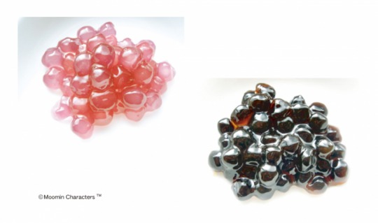 童話「ムーミン」に登場するキャラクター”ニョロニョロ”は、 ”つやつやした白いちいさなたね”から生まれる不思議がいっぱいの生き物。そんな「ニョロニョロのたね」を、ムーミンママが、フィンランドの名産でもある甘酸っぱいベリー味のたね「ニョロニョロベリー」と、ほの甘くてちょっぴりビターなキャラメル味のたね「ニョロニョロキャラメル」に。