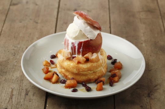 第1弾として9月はジューシィーな”洋梨”、第2弾の10月はほっくりな”かぼちゃ”、第3弾の11月は食感も楽しい”リンゴ”で展開。ボリューム満点のまるごとパンケーキが楽しめる。