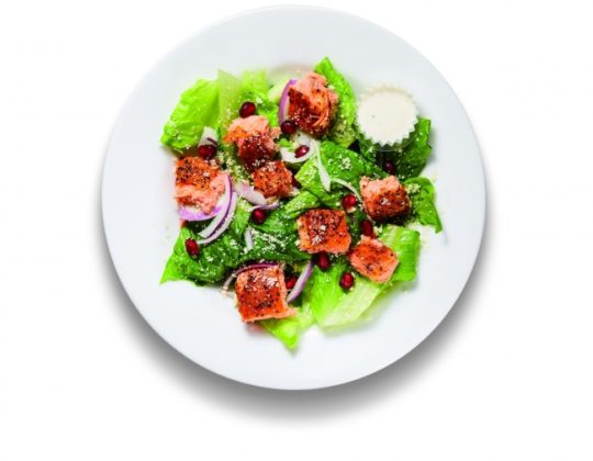 燻製の香ばしいホットスモークサーモンはクリーミーなシーザーサラダドレッシングにぴったり。ごろごろと大きなクルトンが食感のアクセントに。