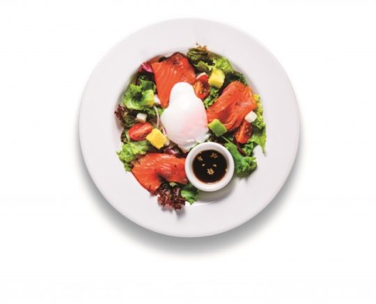 ・サーモンマリネの和風サラダ温泉卵添え ¥399