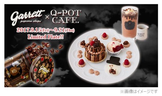 ジャパンフリトレー株式会社の、アメリカ・シカゴ生まれの老舗ポップコーン・ブランド「ギャレット ポップコーン ショップス®」と、スイーツアクセサリーで人気のブランド「Q-pot.」がコラボレーションして生まれた、チョコレートのお城をイメージしたハロウィンプレート「Garrett Popcorn Shops® ✕ Q-pot CAFE. Halloween Chocolate Castle Plate」が「Q-pot CAFE.」にて2017年9月15日(金)から9月21日(木)までの7日間限定で登場する。
