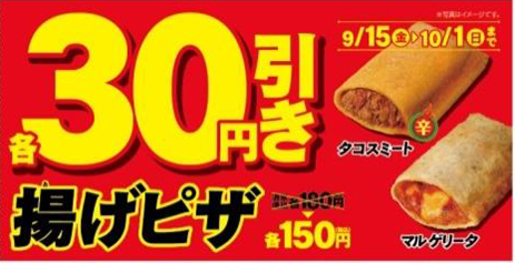 ミニストップ株式会社は、人気の揚げピザが30円引きとなるセールを、2017年9月15日(金)~2017年10月1日(日)までの17日間、国内のミニストップにて実施する。