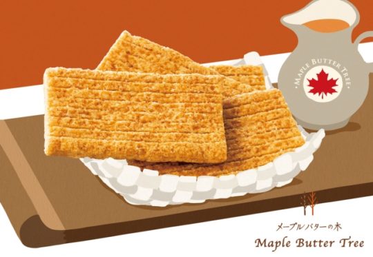 『メープルバターの木』は、“シュガーバターの木ブランドの新定番”として開発した自信作で、本場カナディアン・メープルシロップをオリジナルブレンドバターにとろとろ溶かしこんだ芳醇なメープルバターを、独自のさくさくシリアル生地にかけて焼きあげた。甘くこうばしいメープルバターの香りと、全粒粉やライ麦がこうばしいシリアル生地は、お互いの良さを引き立て合う最高の相性ともいえるマッチング。