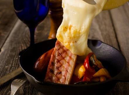 人気の看板メニューは、じっくり焼き上げた野菜やお肉に、トロッととろけるあつあつのチーズをかけて提供する「ラクレット」。席でチーズを料理にかける実演が話題となっている。
