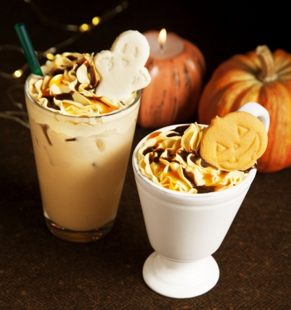 「ハロウィンパンプキンラテ」は、パンプキンフレーバーとまろやかなパンプキンホイップクリームを合わせた、秋らしい風味豊かなカフェラテに、2種のソースとハロウィンデザインのクッキーをトッピングした季節限定のドリンク。
