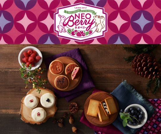 新ブランド「ネオベリー」はスーパーに展開するショップブランド。長年培った洋菓子の技術を活かし、ターゲットである女性に好まれ、健康イメージのある果実「ラズベリー」「ブルーベリー」「ストロベリー」などの甘酸っぱいベリー類を使用した、見た目が華やかな焼き菓子を開発。森の動物たちが集めたベリー類のスイーツをテーマにした色合いが華やかなパッケージ、ディスプレイで展開する。