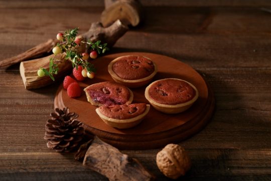 ・商品特徴:ソフトに焼き上げたタルトの中に、各種ベリーの果肉と、果汁やジャムを練りこんだしっとりタルト。