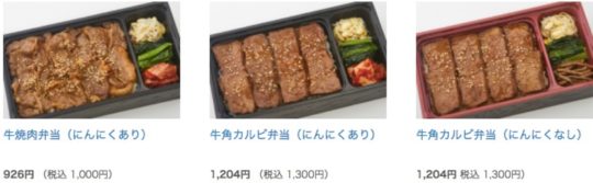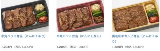 ・牛角カルビ弁当(にんにくあり・なし)/ 1,204円(税込 1,300円)