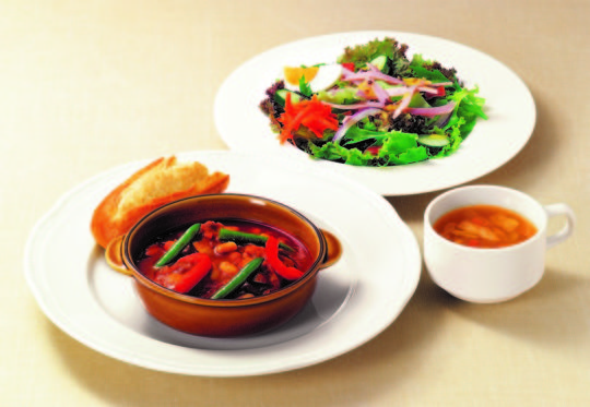 チキンと白いんげん豆をパプリカ風 味のトマトソースで煮込んだ、フランス南西部の煮込み料理をイメージした、これからの季節にぴったりな一品。