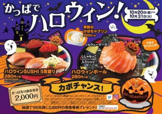 コロワイドグループのかっぱ寿司は、2017年10月20日(金)から31日(火)の期間、『かっぱでハロウィン!』を実施する。