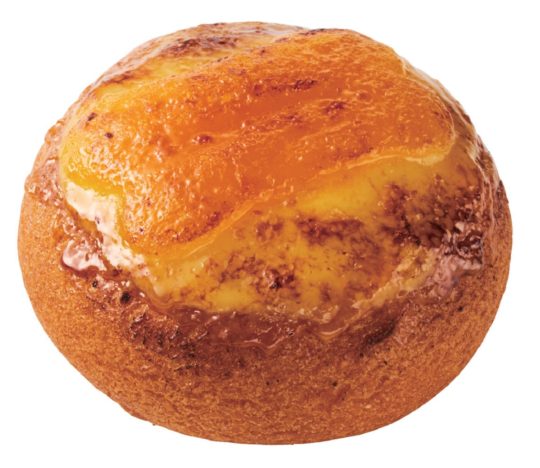 ふんわりとした揚げシュー生地にカスタードクリームを絞り、やさしい甘さのパンプキンあんをトッピング。シュガーをふりかけて、バーナーであぶり、表面を香ばしく仕上げました。