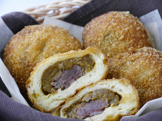 食べ応えのある牛肉が特徴の「ビーフカレーパン」は、銀座の老舗レストラン「ドンピエール」の隠れた人気メニュー、「ビーフカレー」。時間をかけて丁寧に作られる、洗練されたフレンチソースのようなコクと旨味。ゴロっと大きな牛肉が入った人気のビーフカレーを、もちもち食感の生地に閉じ込めたカレーパン。