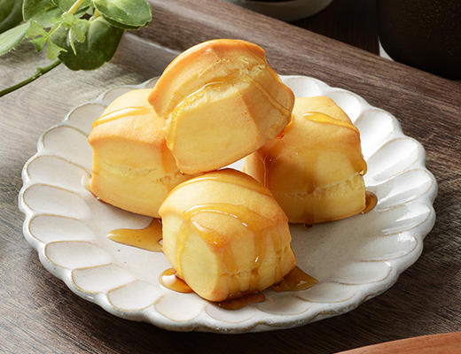 バター香るプチタイプのビスケット。別添のメープル風シロップをトッピングして。