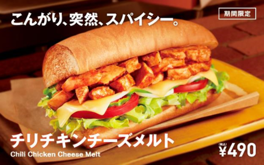 日本サブウェイ株式会社が展開するサンドイッチ・チェーン『サブウェイ』は、 2017年11月1日(水)~12月5日(火)の期間、全国のサブウェイ店舗(一部店舗を除く)にて、食欲そそるスパイシーなチキンとチーズをパンと一緒にこんがりトーストしたサンドイッチ「チリチキンチーズメルト」を発売する。