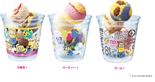 さらに!サーティワンオリジナルの3種類のかわいい“ミニオン”たちもかくれてる!今にも“ミニオン”たちが「Boo Ya!(“やったー!最高!”)」と騒ぎ出しそうなフレーバー。見た目も味も、ネーミングも楽しい、サーティワンならではの“ミニオン”のアイスクリームとなっている。