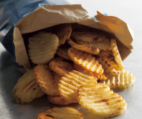 炙る工程を加える事で、じゃがいもの風味が閉じ込められ、旨みが一層引き立てられる。フレーバー6種類。炙り加減をフレーバーごとに調整している。噛むたびに広がる香ばしさを楽しめる。