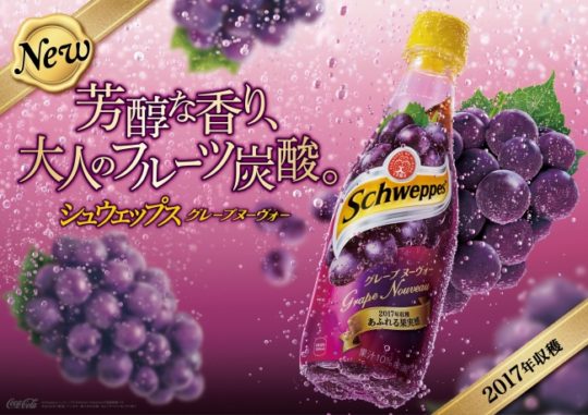 コカ・コーラシステムは、自分らしいライフスタイルを確立した大人世代に向けた炭酸飲料ブランド「シュウェップス」から、2017年収穫の葡萄果汁をブレンドした「シュウェップス グレープ ヌーヴォー」を、2017年11月13日(月)より全国で発売する。