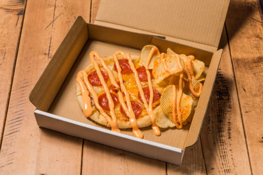 DIESELが手掛けるインターナショナル・ダイナー「グロリアスチェーンカフェ」で、ピザポテトの味わいを再現したピザをメニュー提供することとなった。