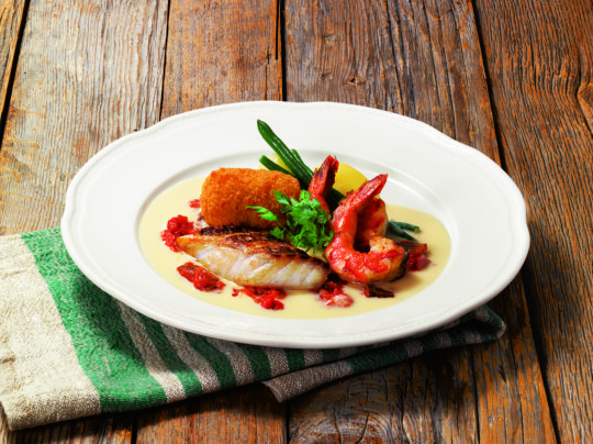 天然真鯛・海老のグリル&カニクリームコロッケ~ヴェルモットソース~