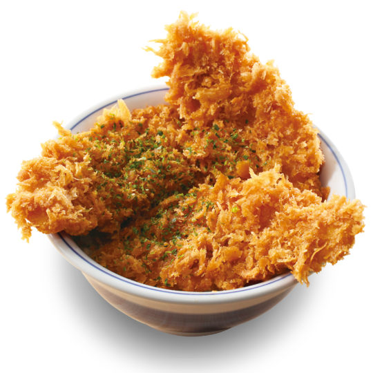 今回のフェアメニューは、新潟発祥のご当地グルメ “タレカツ丼” を「かつや」自慢のささみカツを使い、ボリュームたっぷりに仕上げている。揚げ上がったカツを特製の甘辛しょうゆだれにサッとくぐらせ、ご飯の上へ盛りつける。ただそれだけのシンプルな一品だが、もう一枚、もう一枚と食べたくなるような深い味わいがある。これ以上もなく、これ以下もない、究極に無駄をそぎ落とした新潟の旨さの知恵を堪能できる。