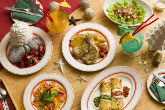 Eggs 'n Thingsのクリスマスパーティープランでは、ジューシーなチキンに、香り豊かな3種のハーブが食欲をそそる『ハーブチキンコンフィ』を始め、本場ハワイの味を忠実に再現した『アヒポキのチョップドサラダ』、甘酸っぱいキウイビネグレットソースをかけた爽やかな『スモークサーモンとパパイヤのカルパッチョ』、たっぷりのチェダーチーズとマッシュポテトをEggs 'n Thingsオリジナルのクレープ生地で包んだ『2種のクレープロール』、ショコラテリーヌのような濃厚な味わいと3種の甘酸っぱいベリーが上品な『”ココレカ”ミックスベリーパーティーパンケーキ』を取り揃えた。クリスマスパーティーメニューは17時以降のディナータイムに提供し、当日のオーダーも可能。