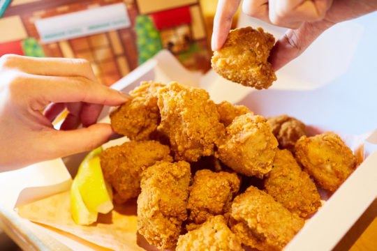 食べやすいサイズのジューシーなフライドチキン“コメチキ”。骨なしのため、小さなこどもからご年配の方まで、みんなで安心して食べられると好評のオリジナルチキン。