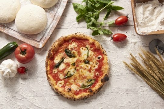 イタリア・ナポリで研鑽を積んだシェフ考案の本格窯焼きピッツァやパスタを、昼はファストカフェ、夜は食べ放題がお得なバールスタイルで提供するカフェバール。直径約25cm のマルゲリータを、平均90秒のスピード*で焼き上げる。*混雑時はその限りではない。