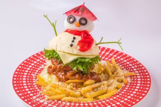 今年のクリスマスは毒可愛くて美味しさにこだわった独特なメニューが登場。雪だるまをサンタに見立てたグラタンコロッケバーガーやトナカイサンタのムースデザート、お店のキャラクターMr.チョッピーをモチーフにしたデザートなどキュートでフォトジェニックなメニューが勢ぞろい。