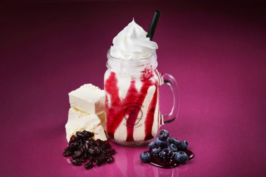 香り高いレーズンとブルーベリーソースの酸味、コク深いクリームチーズ入りホイップクリームの組み合わせが抜群で後を引く美味しさ。「白」と「ベリーレッド」の鮮烈なビジュアルも美しい、オトナ向けのスイーツドリンク。