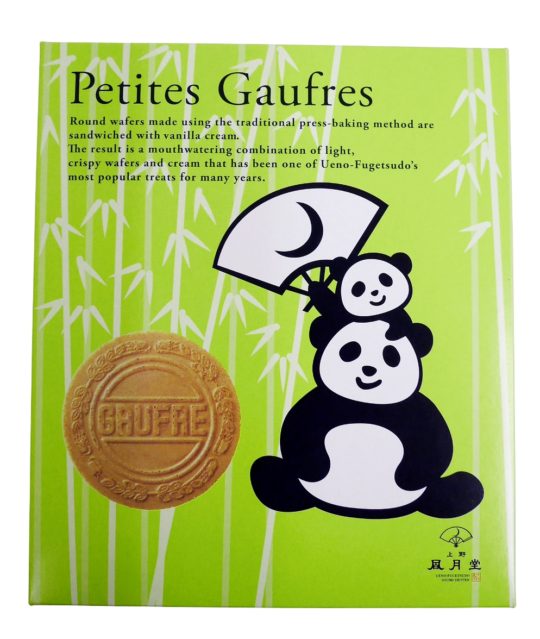 商品特長:上野風月堂の代表菓子「プティゴーフル」のなかでも一番人気のある“バニラ味”の特別パッケージ。個包装の親子パンダのイラストは全部で4種類。自宅用はもちろん、お土産としても最適。