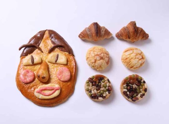 「福笑いパン」は、全てのパーツをパンで作られている。老若男女で食べられるよう、しっとりふんわりとした食感に仕上げている。