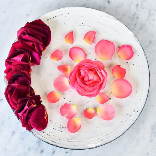 主役であるバラは、農薬不使用で育てられた最高品質の国産食用バラ2種、平塚市の横田園芸の「YOKOTA ROSE」と奥出雲薔薇園の「さ姫」などのバラを贅沢に使用。