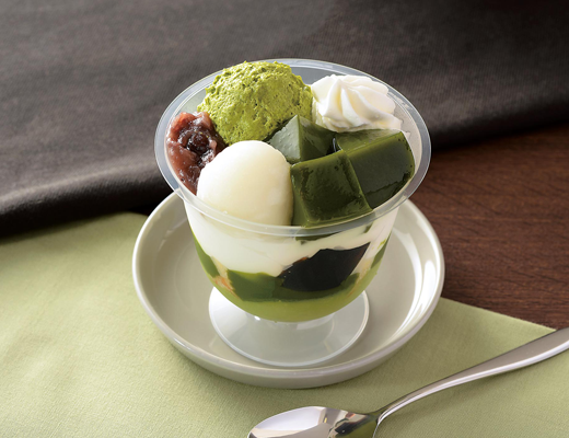 辻利一本店の宇治抹茶を使用した、抹茶好きの方向けの商品。抹茶プリン、スポンジ、抹茶ソース、黒蜜ダイスゼリー、ミルクムースで層を作り、抹茶ムース、もちもち食感の抹茶ゼリー、つぶあん、もち玉、クリームをトッピングしている。抹茶の苦味とあんこや黒蜜の甘さをバランスよく楽しむことができる抹茶パフェ。
