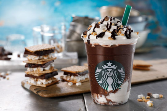 2017年8月10日から発売された「スモア フラペチーノ® -クリスピー マシュマロ-」。マシュマロとチョコレートを使ったアメリカで定番のスイーツ”スモア”の味わいを、さっぱり軽やかに楽しめるもの。