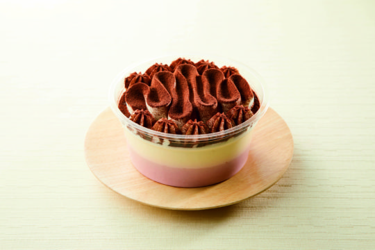 ◆特長 :苺味のマスカルポーネムースの上に、苺シロップを染み込ませたスポンジとマスカルポーネムースを重ね、マスカルポーネクリーム、ココアパウダーをまぶした苺の味わいが楽しめるティラミス。