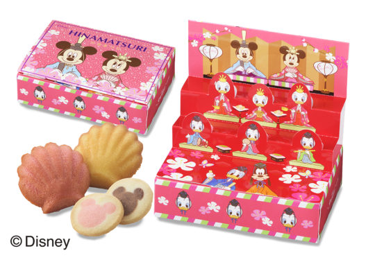 ・特長 :「ミニーマウス」がデザインされたパッケージに詰め合わせたひなまつり限定ギフト。マドレーヌ2種と焼きショコラ(いちご)、「ミッキーマウス」のシルエット柄クッキーが入っている。