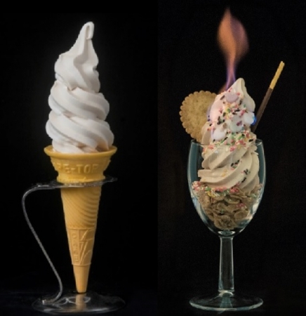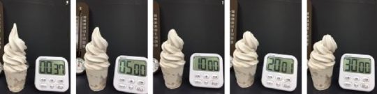 ・20分後の様子。左が一般のソフトクリーム、右が『溶けない!?ソフトクリーム』