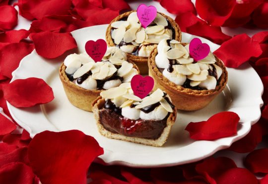 2月はチョコチーズタルトにマシュマロとアーモンドをふんだんにちりばめたパブロミニが新登場。バレンタインの贈り物としてもふさわしい、ハートピックをあしらって販売する。