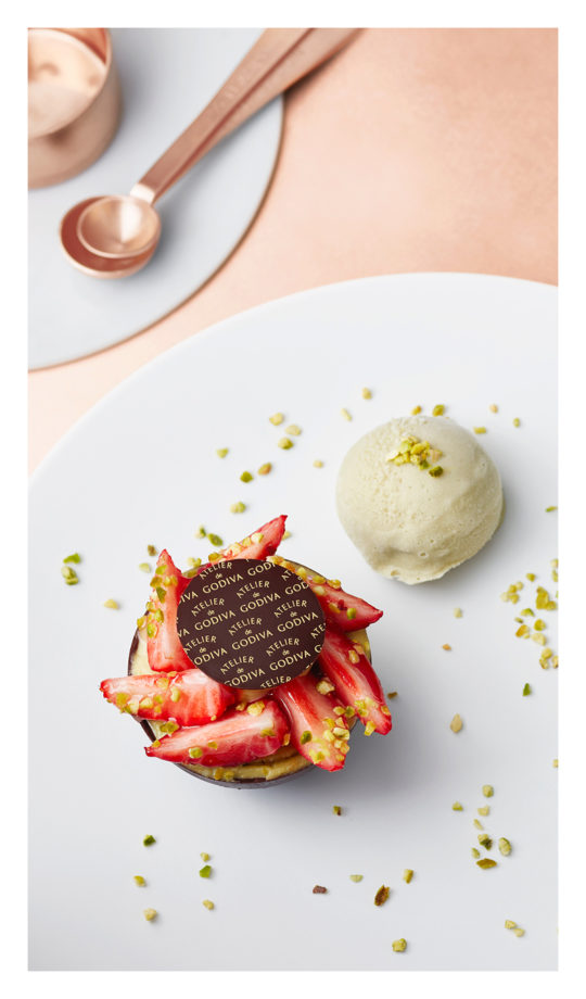本年8月末にオープンした、ここでしか味わえない特別なゴディバ体験を堪能できる「ATELIER de GODIVA西武池袋本店」、そしてATELIER de GODIVA2号店として、福岡県博多に12月15日(金)にオープンした「 ATELIER de GODIVA博多阪急」ではアトリエならではの幸せな体験や驚きをを感じる限定スイーツを提供する。