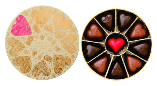 2018 年は“ハート”をテーマに、フルーツとナッツのチョコレートを詰合せた『フルフトクーゲルン』と『ハ ートアソート』が新たに登場する。『フルフトクーゲルン』は、4種類のフルーツガナッシュをそれぞれ食感の楽しめる素材でコーティングした、見た目も華やかなトリュフ。商品名の「フルフト」はドイツ語で「フルーツ」を、「クーゲル」は「丸」や「球」を表している。『ハートアソート』は、丸いパッケージの周りを、フルーツソースやナッツクリームの入った4種類のハート型チョコレートで囲み、真ん中に赤いチョコレートを1粒詰合せた。5種類の異なる味を楽しめる、バレンタインにぴったりな商品。