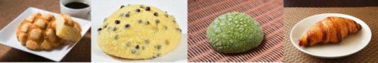 ふんわり柔らかなブリオッシュタイプのパン生地にアーモンドパウダーを加えたビスケット生地を使用した一番人気の「プレーンメロンパン」をはじめ、数種類を常時展開。