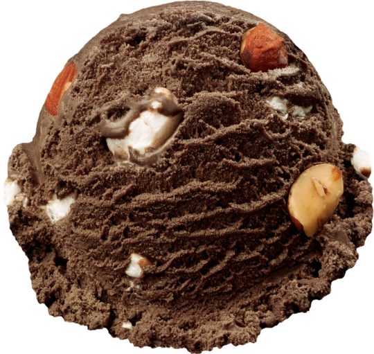 岩をアーモンド、雪はマシュ マロ、ロッキー山脈のドロンコ道をチョコレートアイスクリームで表現。