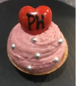 大切な人にプレゼントしたいパイ。チョコレート生地にマスカルポーネクリームベースのストロベリークリームを合わせて。一番上には相手のイニシャルを書いたハートで飾り付け。