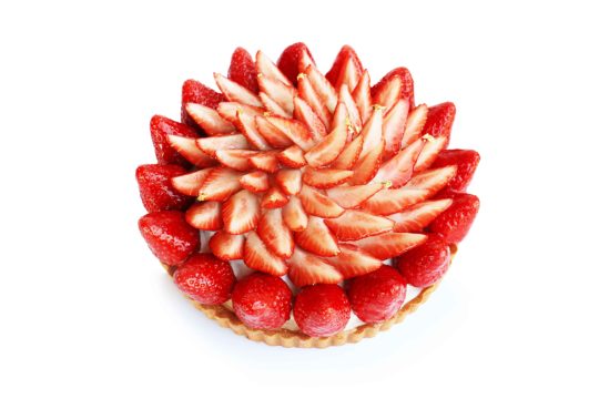 世界大会で受賞経歴を持つ、深作農園産いちご2種をふんだんに飾り付けたケーキ。使用するいちごは3種の中から日替わりでパティシエがチョイスし、華やかなケーキに仕上げた。
