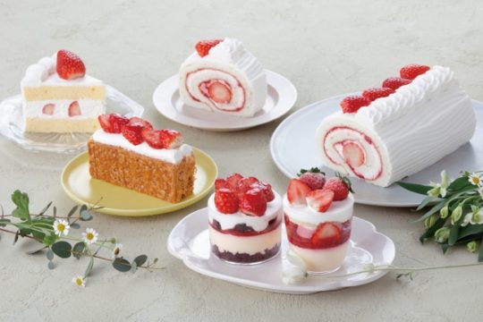 しっとりとした白いシフォン生地で、まるごと一粒の苺、苺ジャム、マスカルポーネを加えたコクのある生クリームを巻き上げた「苺のブランロール」、甘酸っぱい苺とほろ苦いコーヒー、ウイスキーが香る甘さ控えめの大人のティラミス「苺のティラミス」など苺スイーツ3種が登場する。